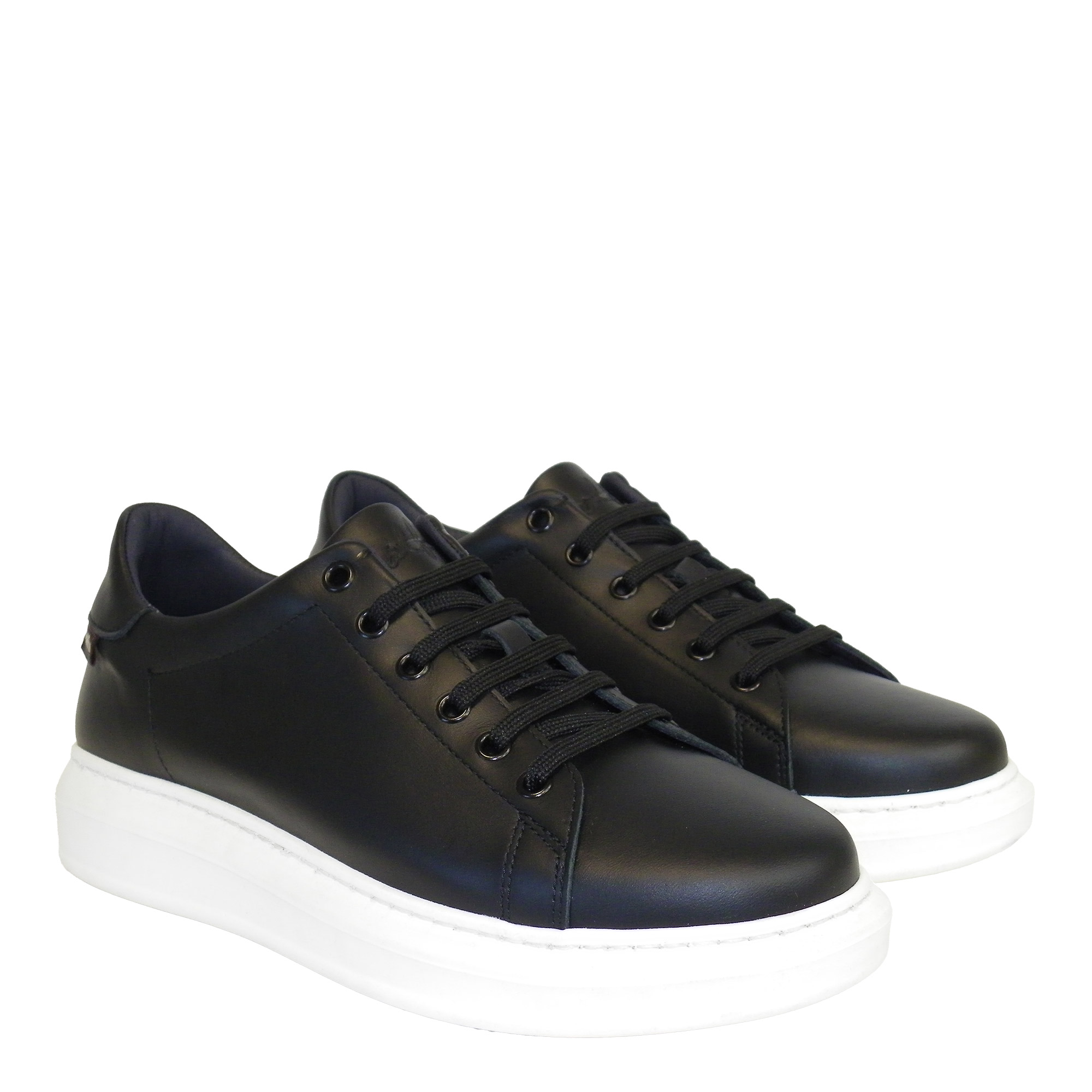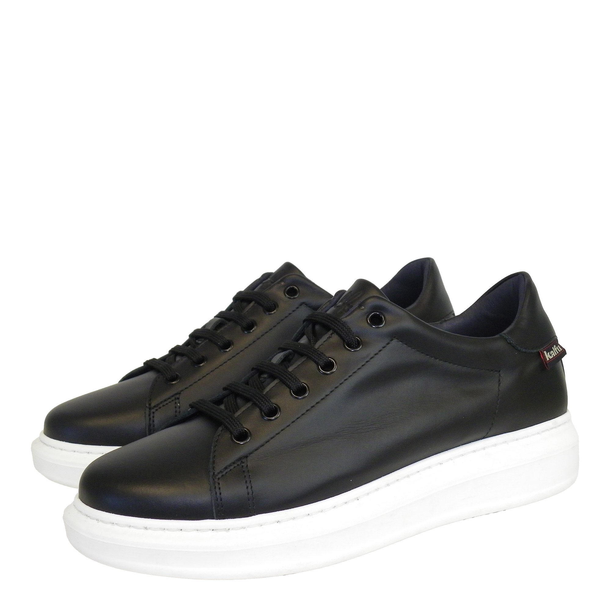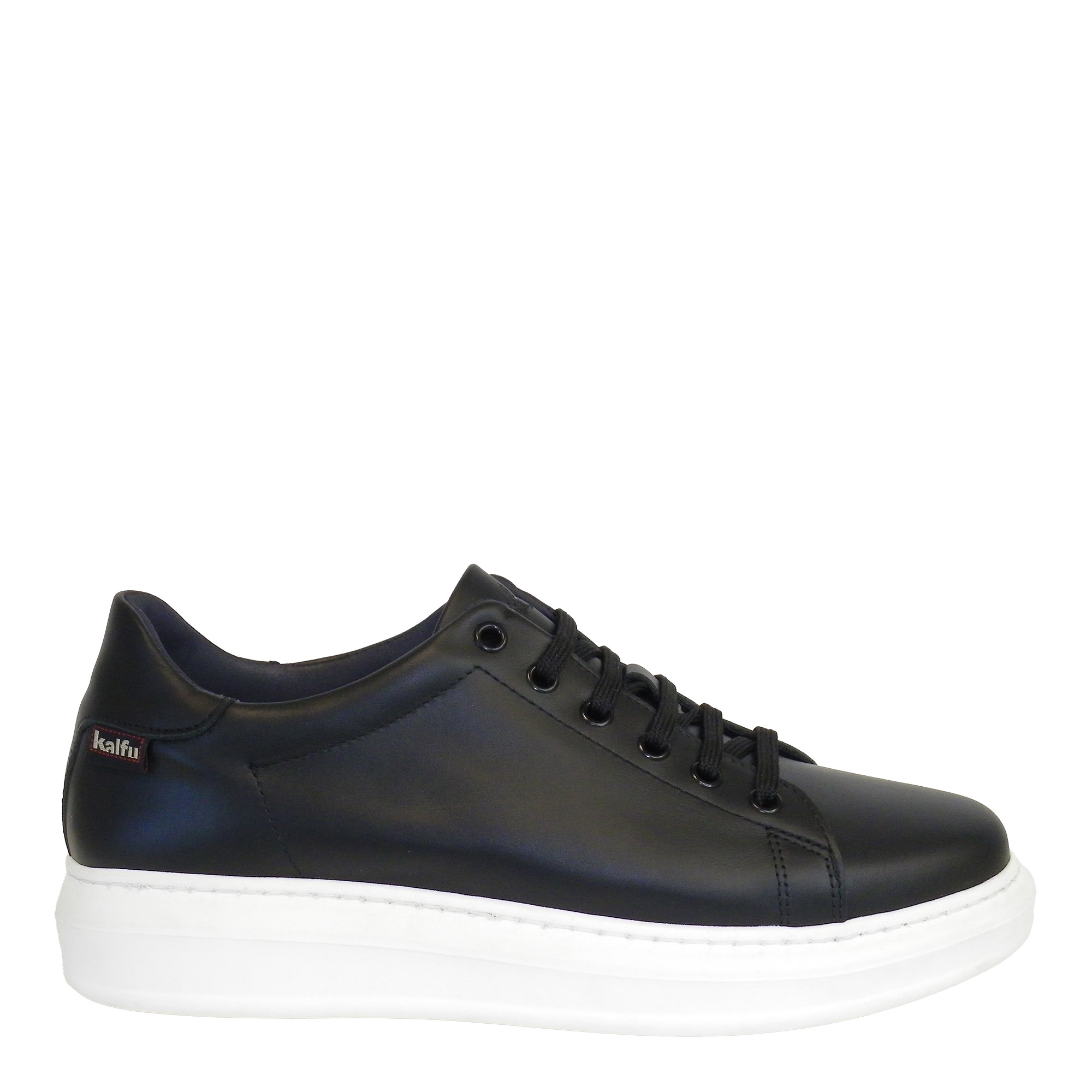 Zapato de hombre, tipo tenis, fabricado con piel flor de primera calidad de color negro. El forro es microfibra con gran absorción, transpiración y resistencia color negro. La suela es de eva ultralígera con gran confort en color blanco.
